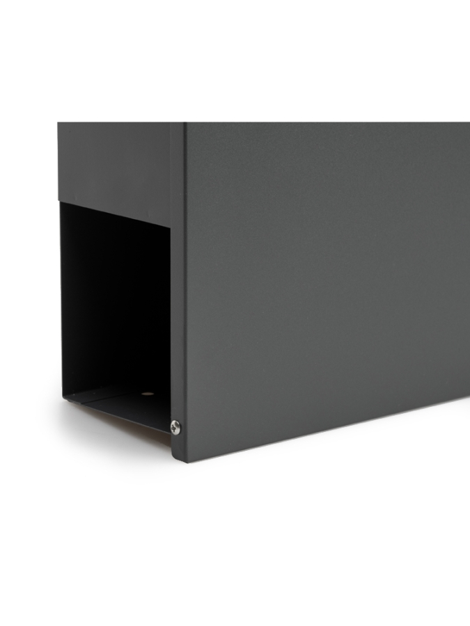 Gefertigt ist der Korpus aus pulverbeschichtetem Stahlblech und mit Akzenten aus gebürstetem Edelstahl. Dieser Briefkasten garantiert Langlebigkeit sowie Korrosions- und Witterungsbeständigkeit. Seine Oberfläche in der Farbe Anthrazit bietet ein modernes und stilvolles Aussehen, das in jede Umgebung passt.
