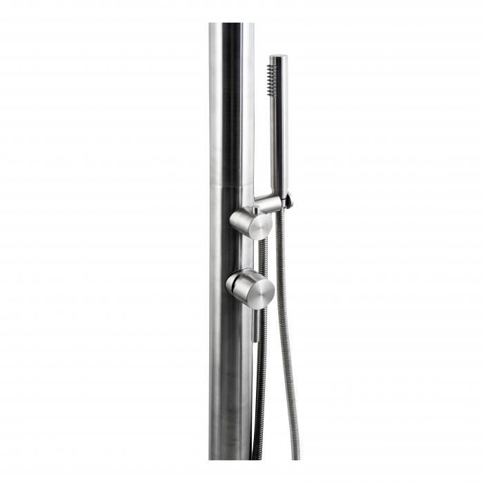 Die Ideal Gartendusche Sophie ist eine exquisite Bereicherung für jeden Garten. Ihr elegantes und edles Erscheinungsbild wird durch eine Säule aus V2A Edelstahl und Armaturen aus gebürstetem Nickel hervorgehoben. Mit einer Höhe von etwa 220 cm und einen Durchmesser von etwa 6 cm für die Säule und etwa 20 cm für den Duschkopf, stellt die Ideal Gartendusche Sophie eine imposante Erscheinung dar. Die Artikelnummer für dieses luxuriöse Modell ist 706586.