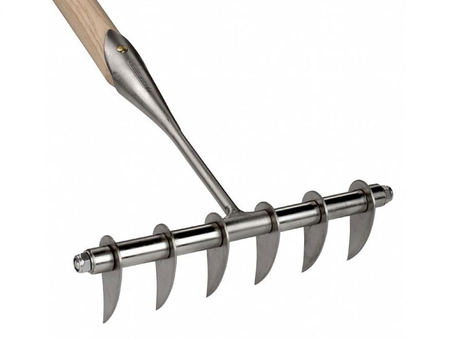 Der Sneeboer Vertikutierrechen 6040 ist einzigartig in seiner Qualität und Handhabung. Dank der Breite von ca. 26cm besitzt er eine ideale Dimension, um die Bodenbearbeitung leicht und effektiv zu gestalten. Im Gegensatz zu breiteren Konstruktionen ermöglicht dieser Vertikutierrechen ein stressarmes Arbeiten und macht dabei fast schon Spaß! Hinzu kommt eine individuelle Pflege und Anpassungsmöglichkeiten, da sich der Rechenkopf vollständig zerlegen lässt. Somit können Sie einzelne Messer nachschärfen oder auswechseln.
