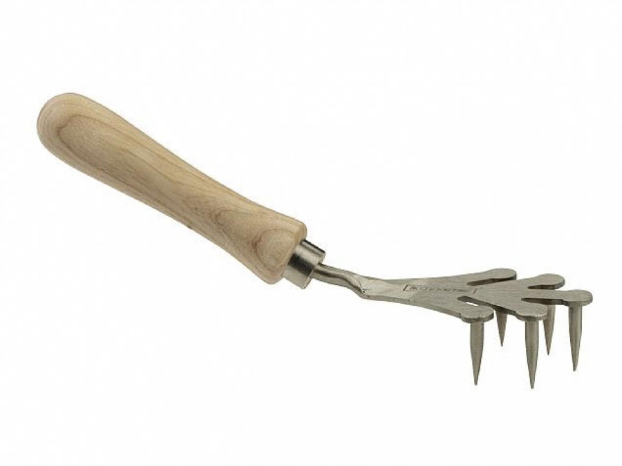 Die Nutzung von feinstem rostfreiem Edelstahl und Eschenholz stellt sicher, dass der Kultivator extrem solide und langlebig ist. Er wird auch in einer Version mit Kirschholzgriff angeboten. Dies ist besonders vorteilhaft, da Kirschholz eine sehr feine Oberfläche besitzt und daher weniger Schmutz anhaften bleibt.