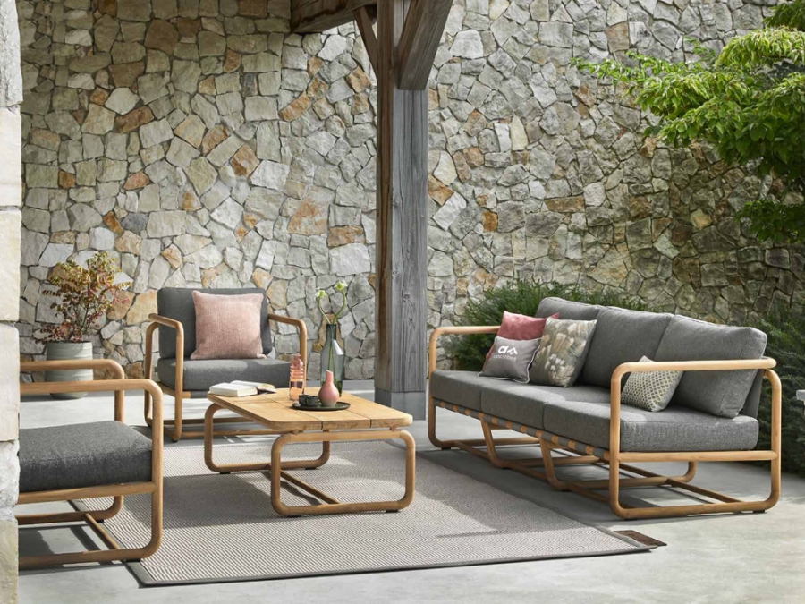 Der Dolce Kaffeetisch von Apple Bee besteht hauptsächlich aus witterungsbeständigem Teakholz. Teakholz ist bekannt für seine Strapazierfähigkeit und Langlebigkeit, was es zur idealen Wahl für Outdoor-Möbel macht. Es ist äußerst resistent gegen Umwelteinflüsse und entwickelt mit der Zeit eine ansprechende natürliche Patina. Das Holz dieses Tisches kommt in seiner natürlichen Farbgebung daher und fügt sich mühelos in jede Terrassen- oder Balkongestaltung ein.