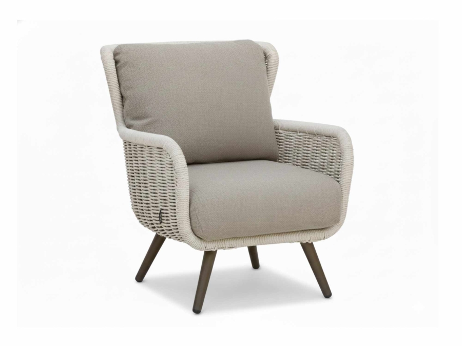 Der Apple Bee Key Largo Lounge Sessel setzt auf ein robustes Gestell aus Aluminium, das pulverbeschichtet ist und damit besonders widerstandsfähig gegen Witterungseinflüsse bleibt. Das sichtbare Geflecht in der Farbe twisted ivory sorgt für eine edle, naturnahe Optik und unterstreicht den hochwertigen Anspruch der Key Largo Serie. Die Polster in der Farbe Boucle Taupe bestehen im Bezug zu ca. 100 % aus Olefin und sind damit speziell für den Einsatz im Freien ausgelegt. Zusammen ergibt dies einen stabilen und zugleich komfortablen Loungesessel, der optisch wie technisch auf Dauerbelastung im Outdoorbereich ausgelegt ist.