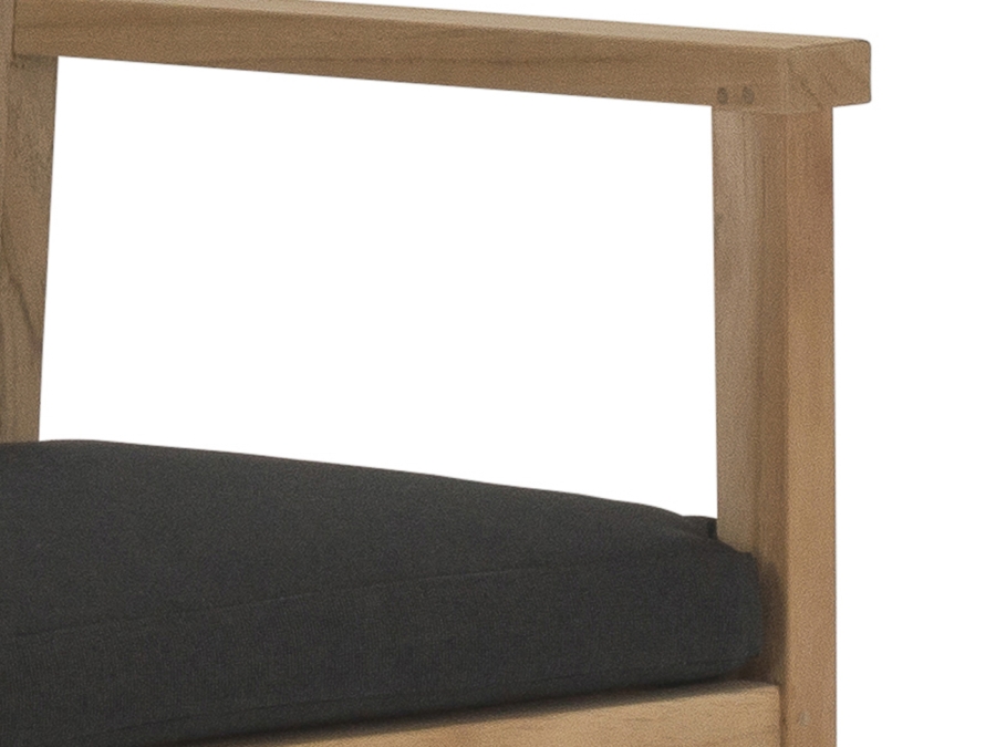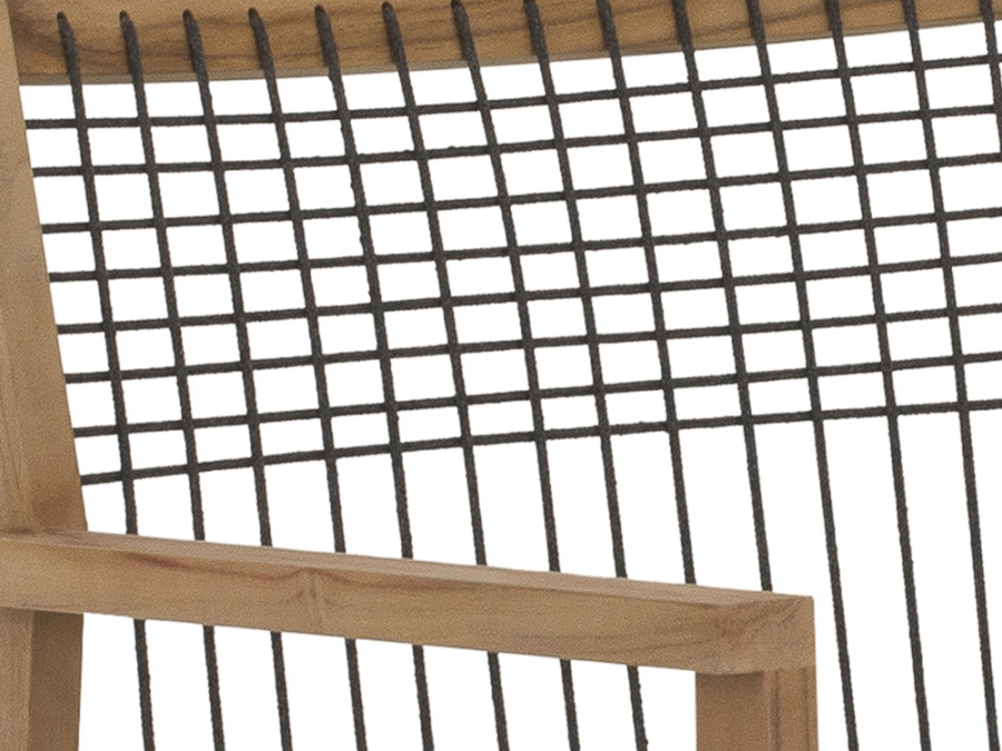 Die edle Kombination aus Teakholz und Polypropylen verleiht dem Apple Bee La Croix Armlehnstuhl seine ganz besondere Ausstrahlung. Das Teakholz-Gestell und die Armlehnen sind nicht nur ästhetisch ansprechend, sondern auch besonders stabil und langlebig. Das schwarz bespannte Seil (Rope) gibt dem Armlehnstuhl zudem eine außergewöhnliche Note. Die Polsterfarbe in Schwarz unterstreicht das elegante Design.