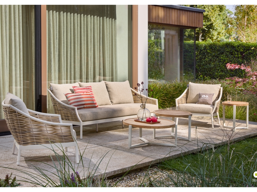 Der Loungesessel Milou von Apple Bee ist mehr als nur ein gewöhnlicher Gartenstuhl; er vereint höchsten Komfort mit einem eleganten Design. Die Kollektion Milou steht für exklusive Qualität und Raffinesse im Outdoor-Bereich. Der Sessel ist UV-beständig und bietet ein entspanntes Sitzgefühl, das durch die weichen Polster mit einer Kissenstärke von etwa 14 cm verstärkt wird. Er eignet sich ideal für Terrassen und Balkone und ist ein Highlight.