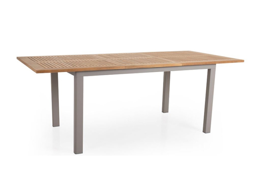 Was zeichnet den Brafab Lyon Ausziehtisch Teak, Gestell Aluminium khaki 224-304x100cm aus?