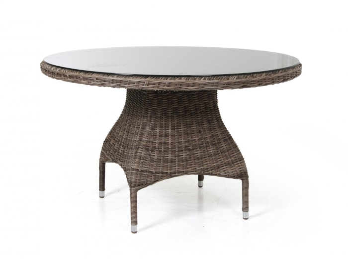 Der Esstisch des Brafab Ninja Diningset New Rustic 9-teilig ist mit einer Tischplatte aus gehärtetem Klarglas ausgestattet. Die Glasplatte besitzt eine Stärke von etwa 8 mm, wodurch eine hohe Robustheit und eine gute Beständigkeit gegenüber alltäglichen Belastungen erreicht werden. Die transparente Oberfläche unterstreicht das Geflecht in New Rustic und verleiht dem Gartenmöbel-Set eine leichte, hochwertige Anmutung. Die Kombination aus stabiler Glasplatte und Aluminium-Gestell sorgt für ein dauerhaft standsicheres und funktionales Ensemble.