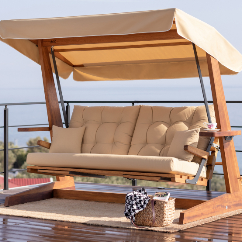 Pemode Hollywoodschaukel Luna 2600 Beige- Iroko-Holz B:270 x T:139 x H:195 cm