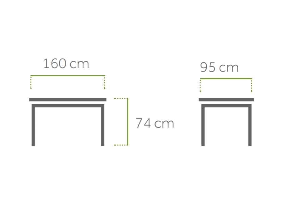 Mit einer Gesamtbreite von ca. 160 cm, einer Gesamttiefe von ca. 95 cm und einer Gesamthöhe von ca. 74 cm bietet der Tisch genügend Platz für gemütliche Stunden im Freien. Trotz seiner robusten Bauweise hat er ein leichtes Gewicht von ca. 22 kg, was die Handhabung und Positionierung erleichtert. Die Stärke Tischplatte misst ca. 20 mm, was zusätzliche Stabilität gewährleistet.