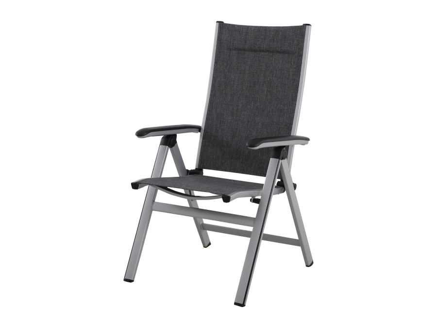 Das Gestell des Positionsstuhls besteht aus langlebigem Aluminium und ist mit der speziellen Elotherm®-Beschichtung versehen, was ihn witterungs- und UV-beständig macht. Die Gewebefarbe kommt in einem stilvollen Anthrazit daher, während das Gestell in elegantem Silber gehalten ist. Diese Kombination aus Aluminium-Gestell und bequemer Textil-Bespannung sorgt dafür, dass der Stuhl nicht nur pflegeleicht ist, sondern auch hohen Komfort bietet.