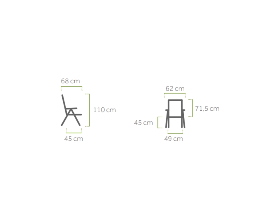 Dieser Stuhl zeichnet sich durch sein robustes Aluminium-Gestell aus, das mit Elotherm® beschichtet ist. Die Beschichtung bietet einen zusätzlichen Schutz vor äußeren Einflüssen und verleiht dem Stuhl seine elegante silberne Farbe. Die Sitzfläche besteht aus einem Textilgewebe, welches aus 100 % Polyester gefertigt ist, was den Stuhl äußerst widerstandsfähig und pflegeleicht macht.