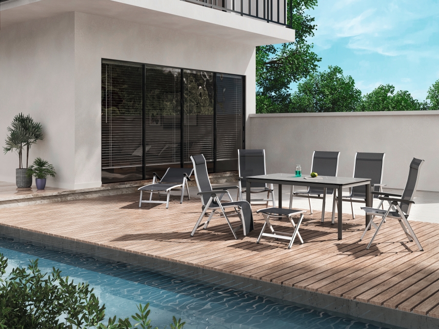 Der MWH Gartenstuhl Kedline beeindruckt durch hochwertige Materialien, die für Komfort und Langlebigkeit sorgen. Das Gestell besteht aus stabilem Aluminium und ist in elegantem silber gefinisht. Die Oberfläche ist Elotherm® beschichtet, das für zusätzlichen Schutz sorgt. Der Sitz ist mit Textilgewebe bespannt, das zu ca. 100 % aus Polyester besteht und nicht nur Komfort, sondern auch eine stilvolle Optik bietet.