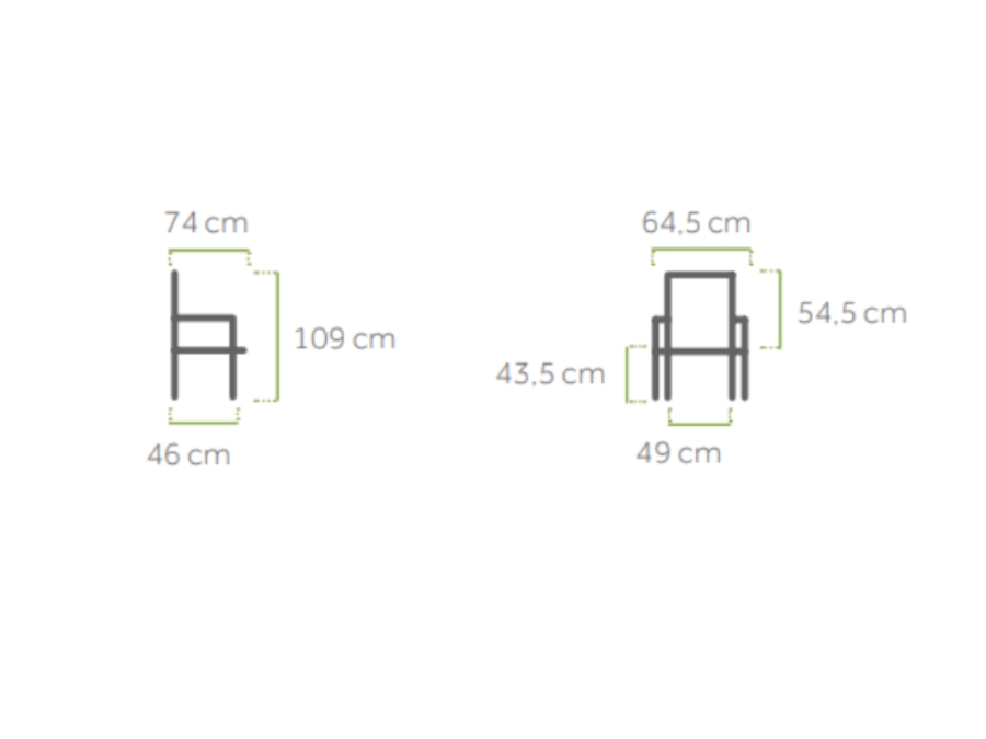 Der Stapelsessel Kedline bietet großzügige Maße für besten Sitzkomfort. Mit einer Gesamtbreite von ca. 64,5 cm, einer Gesamttiefe von ca. 74 cm und einer Gesamthöhe von etwa 109 cm ist er sowohl komfortabel als auch praktisch für jeden Außenbereich. Diese idealen Abmessungen sorgen dafür, dass dieser Gartenstuhl in jeden Bereich integriert werden kann, ohne zu viel Platz einzunehmen.