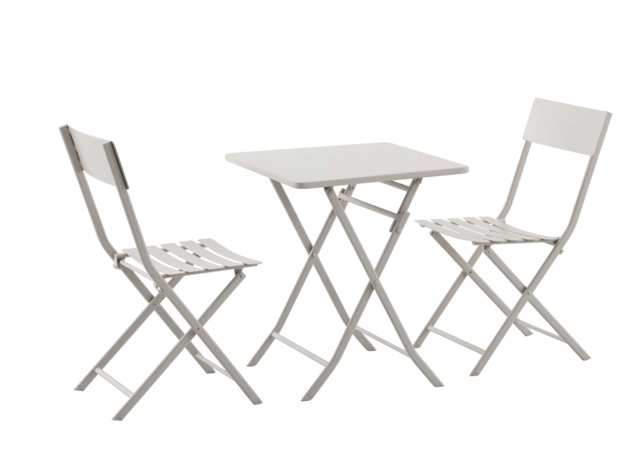 Die kompakten Maße des Sets machen es zur perfekten Ergänzung für kleinere Außenbereiche. Der Tisch misst ca. 60x60x72 cm, während die Stühle mit Abmessungen von ca. 51x42x83 cm eine bequeme Sitzgelegenheit bieten. Trotz ihrer Größe bieten die Stühle eine maximale Belastung von 110 kg, sodass Sie Komfort und Sicherheit erwarten können.