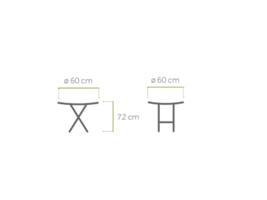 Mit einer Gesamtbreite und Gesamttiefe von ca. 60 cm und einer Gesamthöhe von ca. 72 cm bietet der Tisch die ideale Größe für gemütliche Stunden im Freien. Trotz seiner kompakten Maße kann der  Gartentisch Rondiero mit bis zu 50 kg belastet werden und bietet damit ausreichend Platz und Tragkraft.
