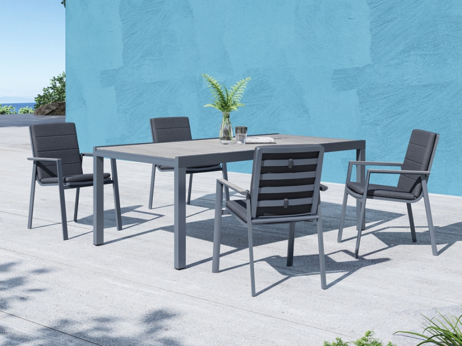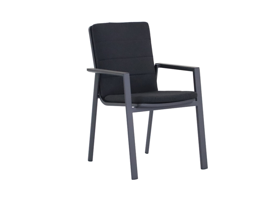 Das Gestell des Creador Catalina Stapelstuhls besteht aus robustem Aluminium, das mit einer Elotherm® Beschichtung versehen ist, um zusätzliche Beständigkeit zu garantieren. Die Polsterfarbe in elegantem Anthrazit und die Gestellfarbe in grau, matt sorgen dafür, dass der Stuhl nahtlos in jede Gartengestaltung integriert werden kann. Der Bezug des Sitzes besteht aus 100 % Polyester, was für ein angenehmes Sitzgefühl und einfache Pflege sorgt.