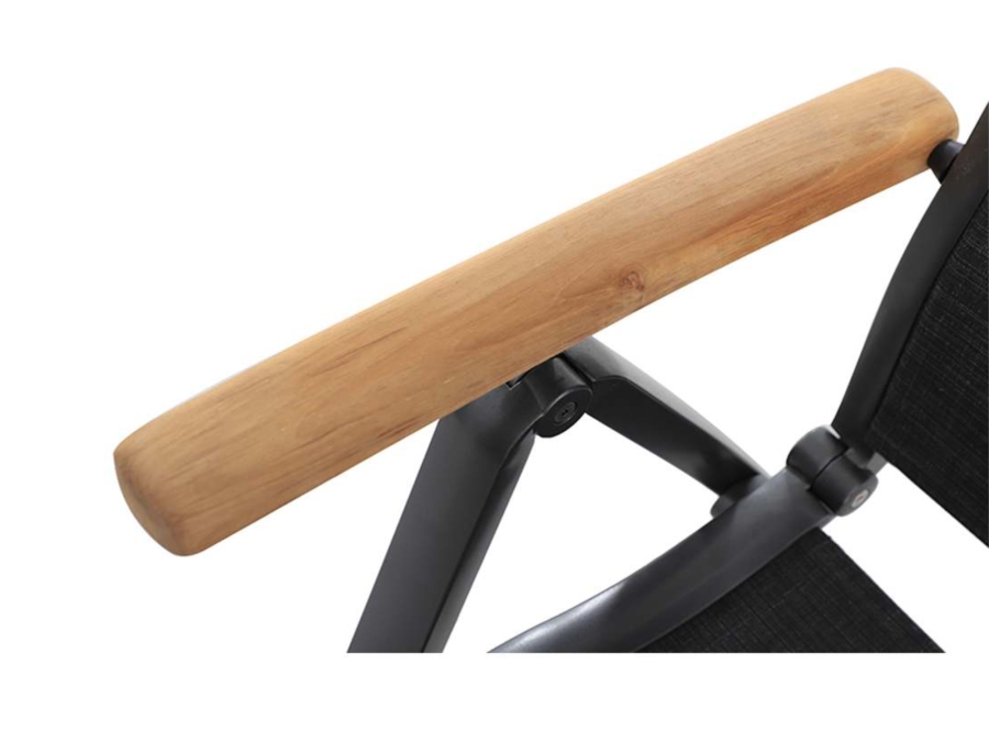Das Gestell des Kensington Plus Teak Positionssessels ist aus hochwertigem Aluminium gefertigt und mit einer Elotherm Oberfläche in der Farbe Iron Grey versehen. Diese Materialien gewährleisten die Rostfreiheit des Stuhls, wodurch er ideal für den langfristigen Außeneinsatz ist. Die Armlehnen sind mit elegantem Teakholz ausgestattet, was dem Gartenstuhl ein zusätzliches Maß an Eleganz und Komfort verleiht. Die Bespannung besteht zu 100 % aus Polyester, einem Material, das für seine Langlebigkeit und einfache Pflege bekannt ist.