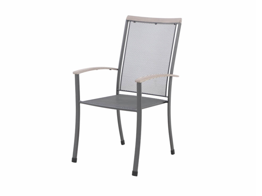 Der Royal Garden Balero Stapelstuhl besteht aus einem Aluminiumgestell, das mit einer zusätzlichen Elotherm® Oberfläche veredelt ist. Diese Beschichtung schützt das Metall vor äußeren Einflüssen und fördert die Langlebigkeit des Stuhls. Die Armlehnen und die Rückenlehne sind in stilvoller Holzoptik gestaltet, was dem Stuhl ein zusätzliches ästhetisches Element verleiht.
