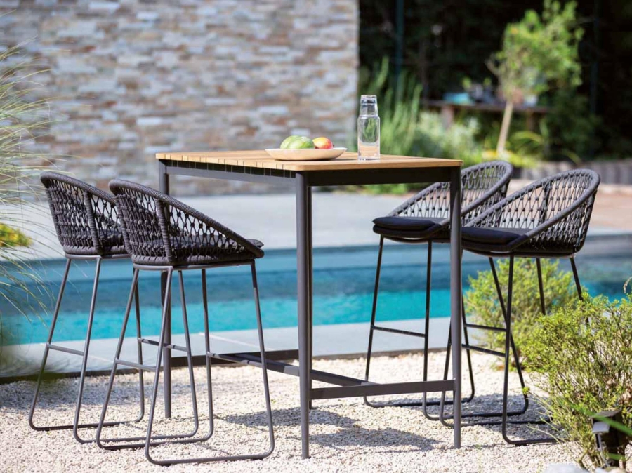 Das Bar-Set Kuta-Luna von Niehoff Garden besticht durch seine exzellente Materialauswahl und hochwertigen Verarbeitung. Die Bespannung der Möbel besteht aus einer robusten Kordelbespannung, welche perfekt durch das pulverbeschichtete Aluminiumgestell ergänzt wird. Die Gesamtfarbgebung in edlem Anthrazit unterstreicht die moderne und zeitlose Optik des Sets. Ein weiteres Highlight sind Tischplatten aus Teakholz, welches nicht nur durch seine Langlebigkeit, sondern auch durch seine harmonische Farbgebung überzeugt.