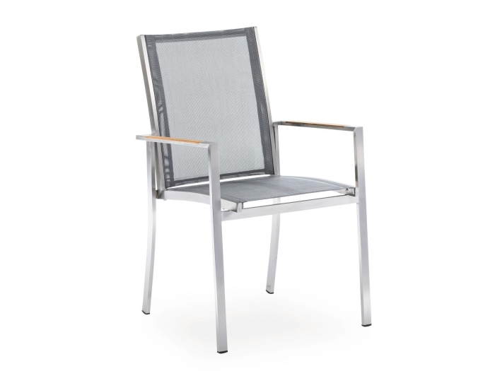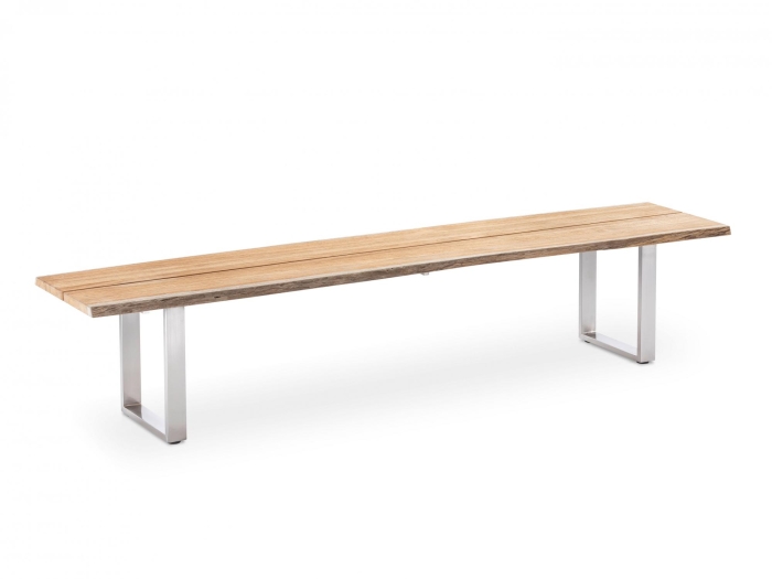 Das Gartenmöbel-Set umfasst insgesamt drei komfortable Armlehnstühle der Serie Tina, die sich ideal für längeres Sitzen eignen. Ergänzt wird die Sitzgruppe durch einen Solid Baumkantentisch mit einer Länge von 220 cm und einer Breite von 95 cm. Die charakteristische Baumkante sorgt für eine naturnahe Optik, während die Profilkufe aus Edelstahl dem Tisch eine moderne, geradlinige Basis verleiht. Drei Sitzschalen mit Baytline-Bezug vervollständigen das Gartenmöbel-Set und erhöhen den Sitzkomfort deutlich.