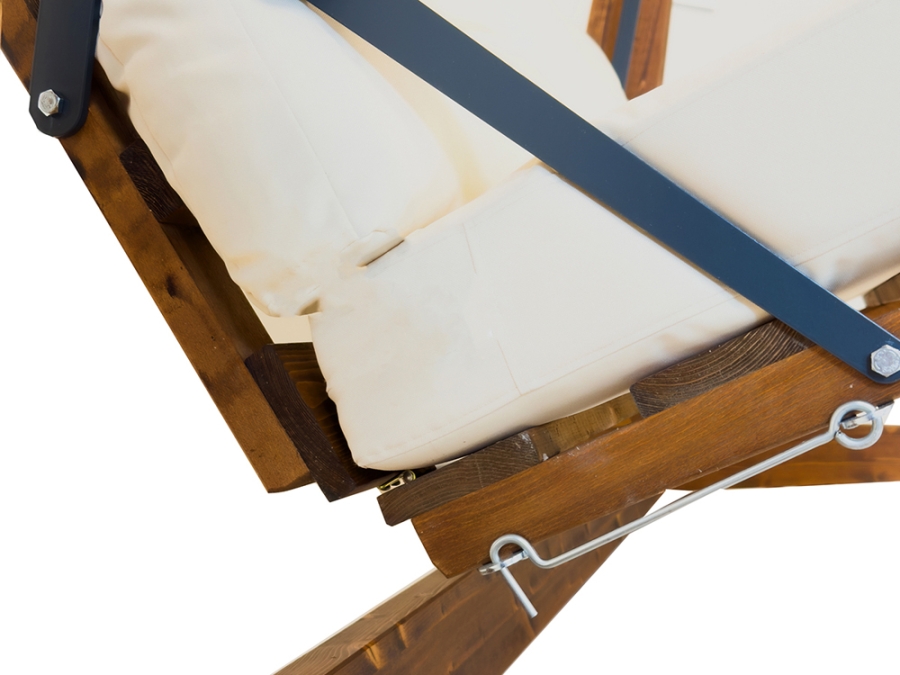 Es geht nicht nur um den Ausdruck von Eleganz und Luxus. Es geht darum, Ihnen eine ausnahmslose gemütliche Entspannung zu ermöglichen. Dies wird durch die stabile Konstruktion des Gestells, das aus Fichte und Kiefernholz in attraktiver brauner Farbe besteht, gewährleistet. Die schicke Gestellfarbe harmoniert perfekt mit dem Polsterbezug und dem Sonnendach in Beige, die beide aus 100%igem Polyester bestehen.