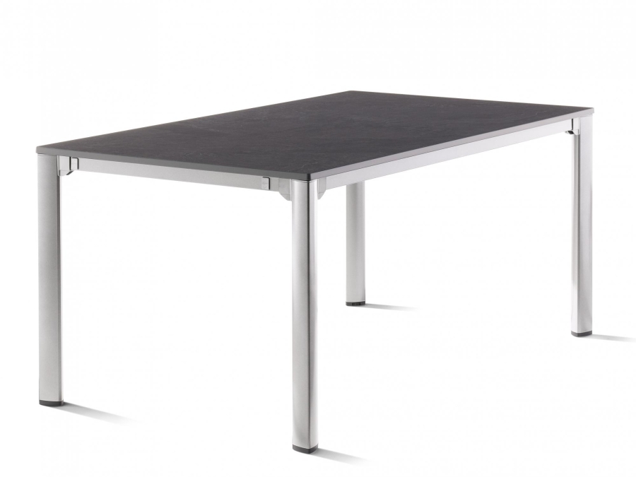Sieger Exclusiv-Tisch verlängerbar 165-225-285x95cm Alu graphit mit Vivodur Tischplatte in Schiefer-Dekor für stilvolle Gartenmomente