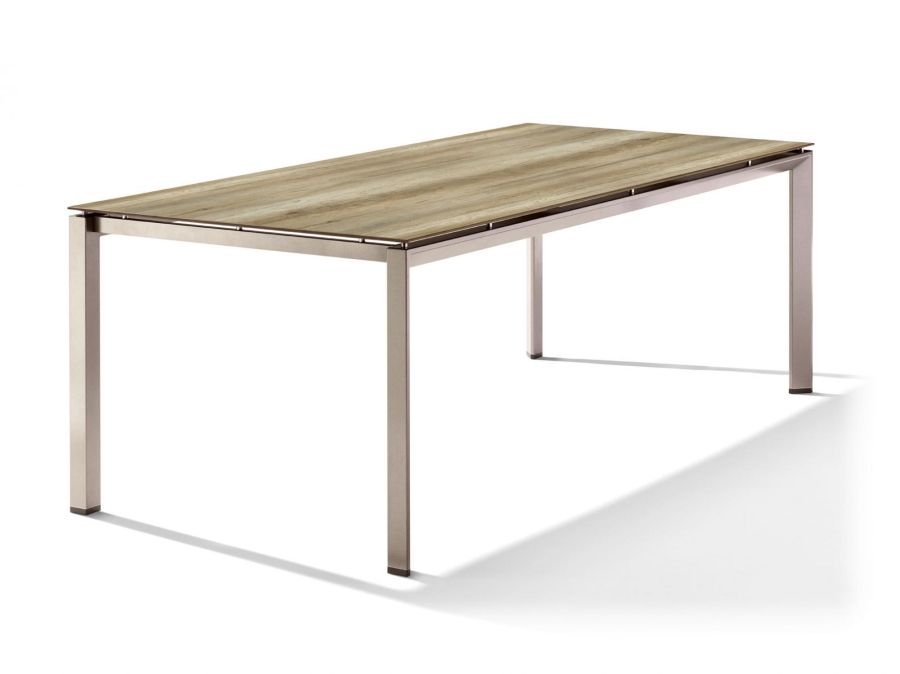 Wodurch zeichnet sich der Sieger Gartentisch 220x100cm Polytec Eiche hell-Gestell Champagner aus?