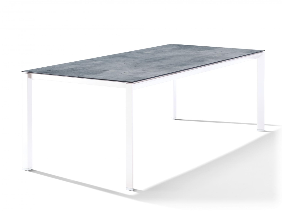 Sieger Gartentisch 220y100cm Polytec Zement graphit-Gestell Weiß