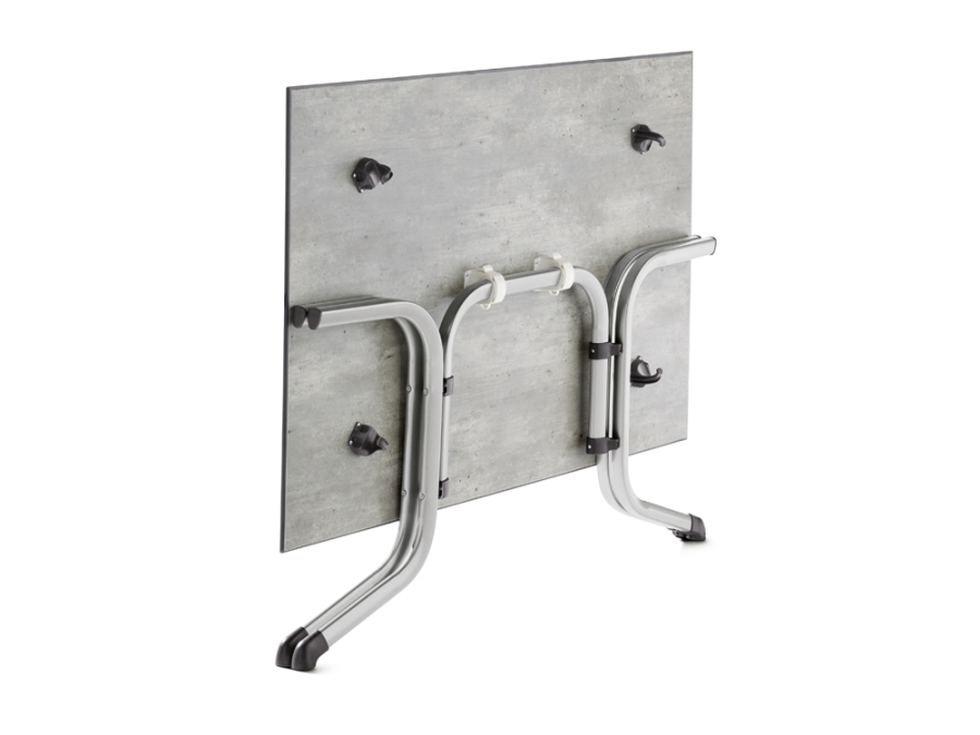 Der Sieger Klapptisch Polytec Beton hell 140x90cm verfügt über eine durchdachte, leichtgängige Klappmechanik. Mit wenigen Handgriffen lässt sich die Tischplatte hochklappen und das Gestell zusammenlegen, sodass der Gartentisch platzsparend an der Wand oder in einer Nische verstaut werden kann. Diese Eigenschaft ist besonders praktisch auf kleineren Balkonen oder in Bereichen, in denen die Fläche flexibel genutzt wird. Der integrierte Höhenausgleich an den Tischbeinen hilft, leichte Unebenheiten des Untergrunds auszugleichen und sorgt für einen kippelfreien Stand, selbst auf Naturstein, Holzdecks oder Fliesen.