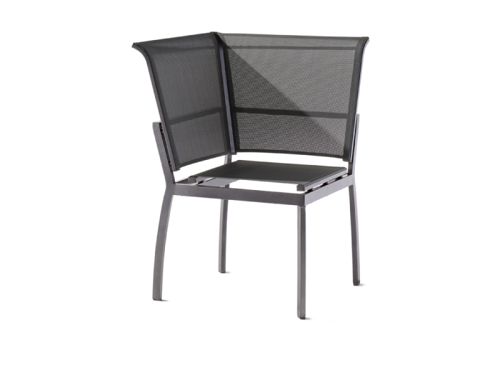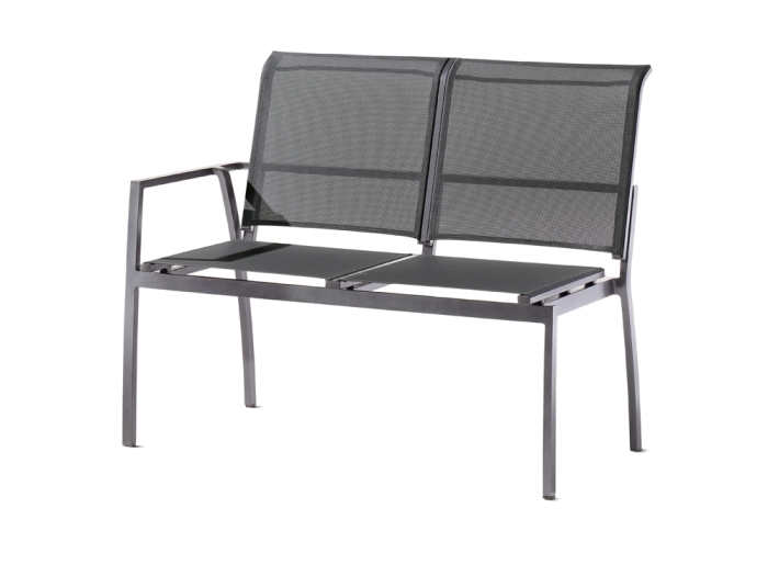 Die Eleganz der Sitzgruppe entsteht durch ihr Aluminiumgestell, das mit einer robusten Polyesterbeschichtung in eisengrauem Design veredelt wurde. Die Sitzbezüge, die aus Textilux-Kunstfasergewebe in Silbergrau bestehen, sorgen nicht nur für Bequemlichkeit, sondern gewährleisten auch Langlebigkeit und Witterungsbeständigkeit.