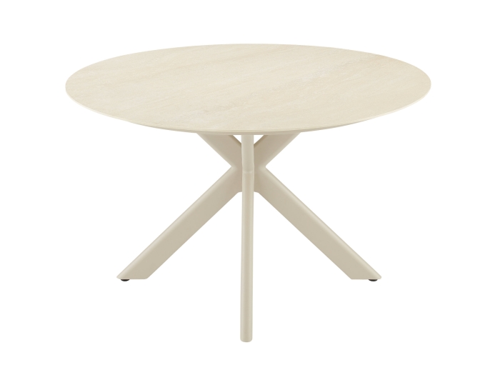 Das Gartenmöbel-Set überzeugt durch eine hochwertige Materialkombination für den Einsatz im Freien. Das Gestell besteht aus pulverbeschichtetem Aluminium, das ein geringes Gewicht mit hoher Stabilität verbindet und zusätzlich vor Korrosion geschützt ist. Die Armlehnen aus Teakholz setzen einen warmen, natürlichen Akzent und sorgen für eine angenehme Haptik. Die Tischplatte aus robustem Keramik in der Farbe Dune ist kratzunempfindlich und leicht zu reinigen.