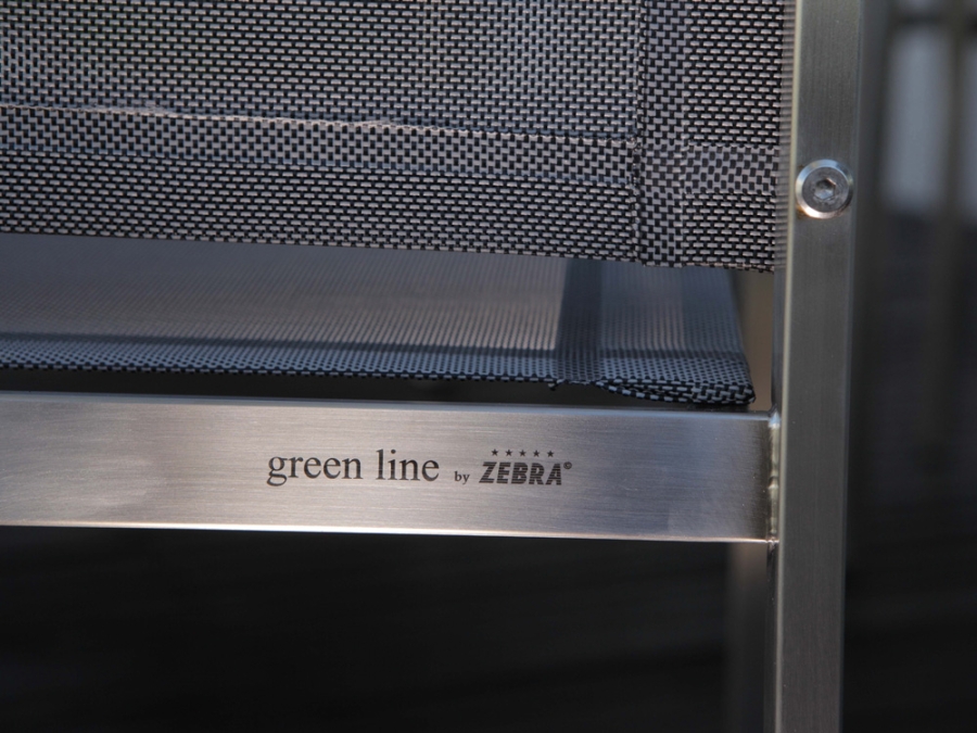 Die Gestelle bestehen aus langlebigem Edelstahl, was nicht nur eine moderne Optik bietet, sondern auch für eine hohe Wetterbeständigkeit sorgt. Die Tischplatte und die Armlehnen sind aus hochwertigem Teakholz gefertigt, welches für seine Robustheit und edles Aussehen bekannt ist. Die Gewebe-Farbe in stilvollem Anthrazit rundet das Gesamtbild perfekt ab.