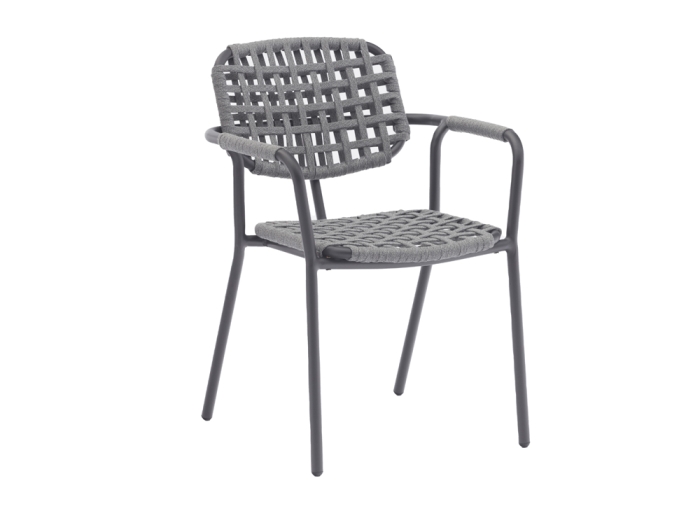 Die stapelbaren Stühle Costa sind überzeugend in ihrer Qualität. Ihre ergonomisch rund geformte Lehne ist mit ineinander verwobenen Gewebebändern bespannt. Dies ist nicht nur ein interessantes Designelement, sondern auch von praktischem Nutzen, da es den Komfort der Stühle erhöht. Der verwendete Material-Mix aus Metall, HPL und Aluminium unterstreicht die erstklassige Qualität der Zebra Taro-Costa Essgruppe.