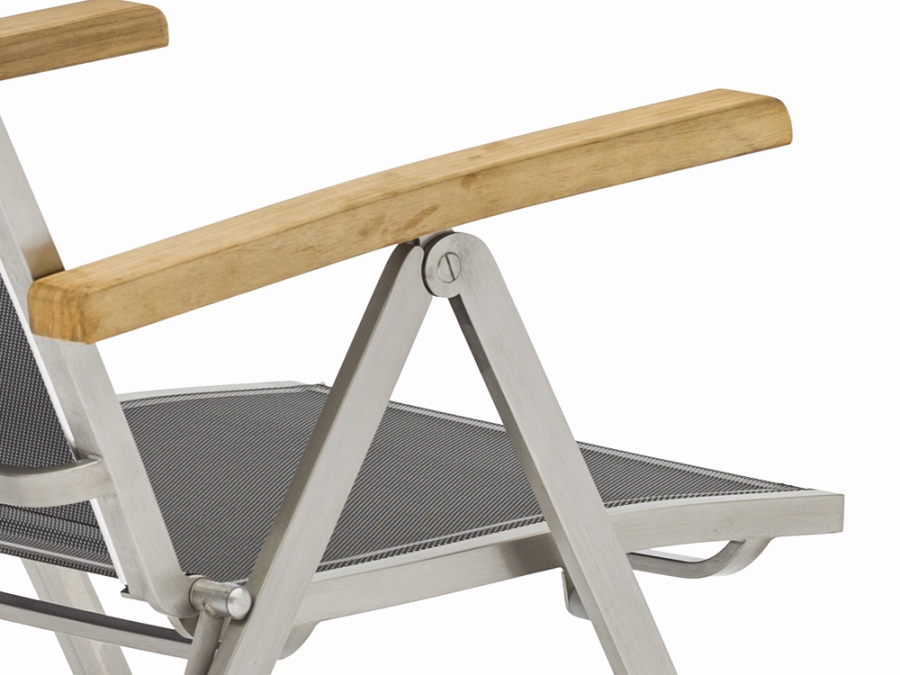 Zebra One Klappsessel Dark Platinum Edelstahl mit Teakarmlehnen – komfortabler Gartenstuhl für stilvolle Balkone und Terrassen