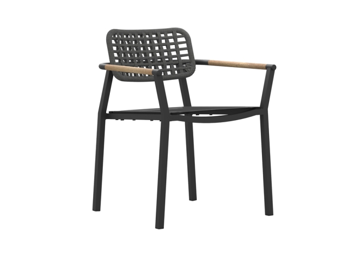 Das Zebra Yobex-Ajax Gartenmöbel-Set besteht aus einer Reihe hochwertiger Materialien, bei denen jedes Detail sorgfältig auf Komfort und Stil abgestimmt ist. Der Rahmen der Stühle besteht aus pulverbeschichtetem Aluminium in der Farbe Graphit. Dies wird durch Armlehnen aus recyceltem Teakholz in gutem Kontrast zu den Sitzflächen und Rückenlehnen aus Outdoor-Gewebe und Rope gesetzt. Die attraktive Geflechtfarbe Truffle rundet das Design ab, so bietet der Zebra Yobex Stapelstuhl eine komfortable und langlebige Sitzmöglichkeit. Der Ajax Tisch ist mit einer Tischplatte aus HPL (High Pressure Laminate) mit Betondekor und Elementen aus recyceltem Teakholz versehen. Das Tischgestell besteht aus verzinktem Stahl und hat ebenfalls als Finish eine Pulverbeschichtung in modernem Graphitton.