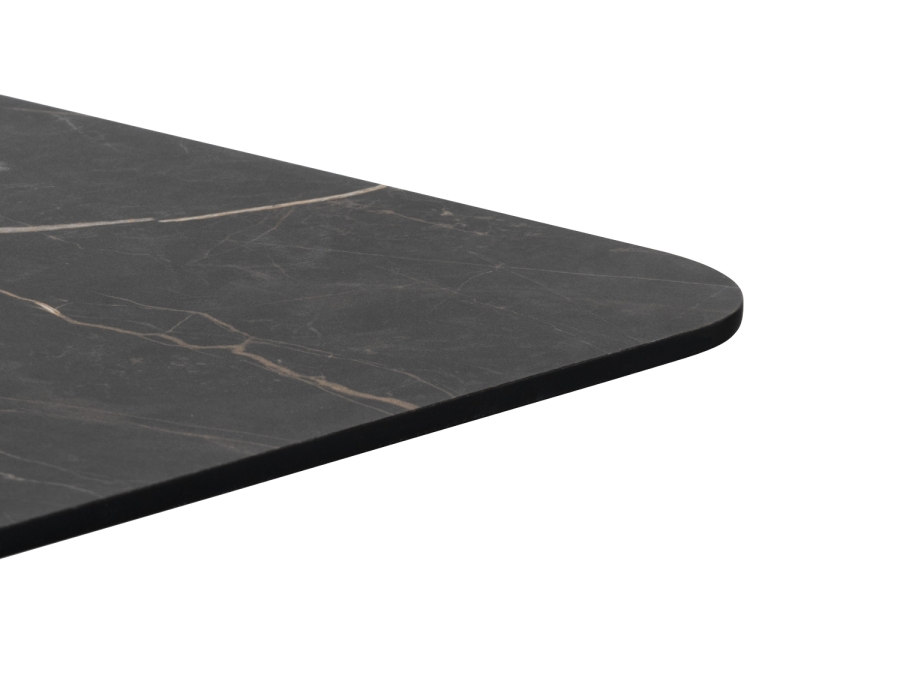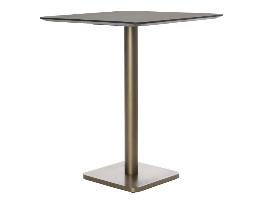 Der Bartisch besticht durch sein robustes Gestell aus pulverbeschichtetem Stahl, das in einer ansprechenden goldenen Farbe gehalten ist. Die Tischplatte aus HPL mit edlem Marble Onyx Dekor verleiht dem Tisch eine luxuriöse Note, die Ihre Einrichtung bereichert. Die Kombination dieser Materialien sorgt für eine langlebige und widerstandsfähige Konstruktion.