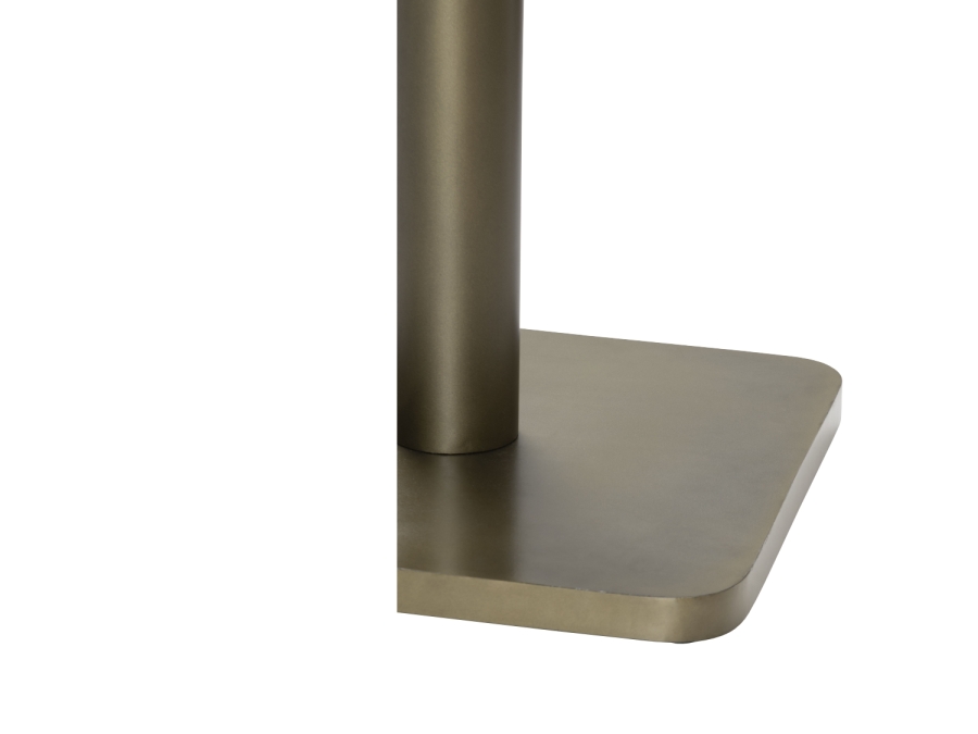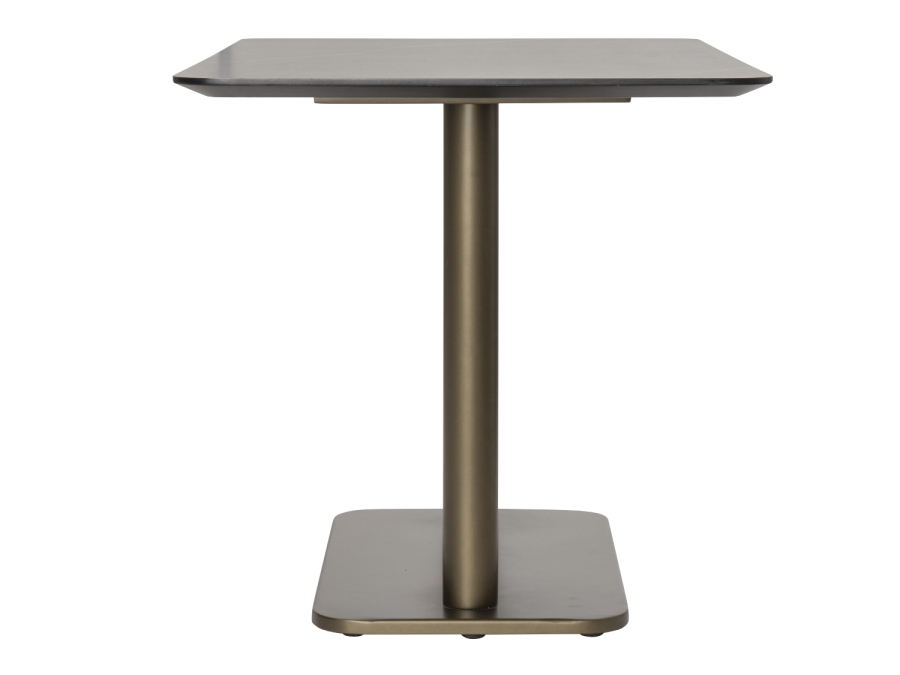 Der Tisch verfügt über ein stabiles Gestell aus pulverbeschichtetem Stahl in einem elegantem Goldton, das nicht nur robust, sondern auch optisch ansprechend ist. Die Tischplatte besteht aus HPL mit einem edlen Marble Onyx Dekor, das für Langlebigkeit und einen klassischen Look sorgt. Diese sorgfältig ausgewählten Materialien machen den Tisch zu einem wahren Highlight in jedem Raum.
