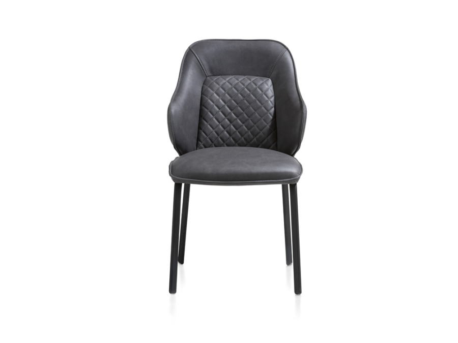 Zur Ausstattung des Armadillo Stuhls gehört auch ein Griff an der Rückenlehne, der das Verschieben des Stuhls erleichtert und den Bezug vor Beschädigungen schützt. Die seitlich angedeuteten Armlehnen erhöhen den Komfort und die Stabilität wird durch vier schlanke Metallbeine gewährleistet, die perfekt mit dem Bezug harmonieren.