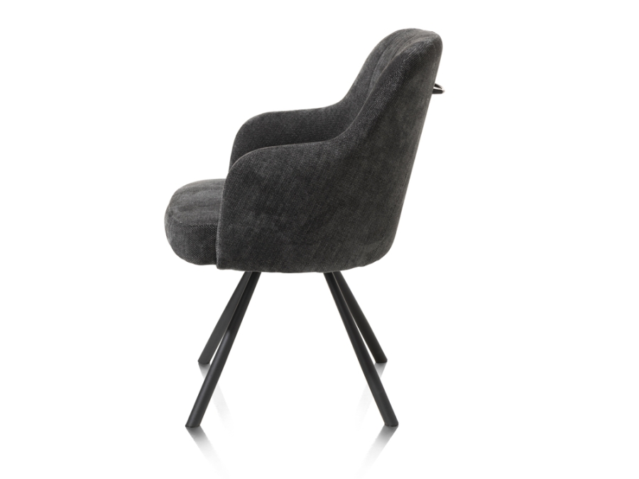 Der Armlehn-, Drehstuhl Eva überzeugt durch hochwertige Materialien. Der ansprechende Levigno-Polsterbezug in Anthrazit, zusammen mit den pulverbeschichteten Stahlbeinen in der Farbe Rough off black, kombiniert Gemütlichkeit und industriellen Chic auf eine besonders stilvolle Art. Mit einem Griff an der Rückenlehne und Taschenfederkern bietet dieser Stuhl eine ausgezeichnete Kombination aus Design und Komfort. Sein pflegeleichtes und drehbares Design macht ihn auch zu einer praktischen Wahl für Ihr Zuhause.