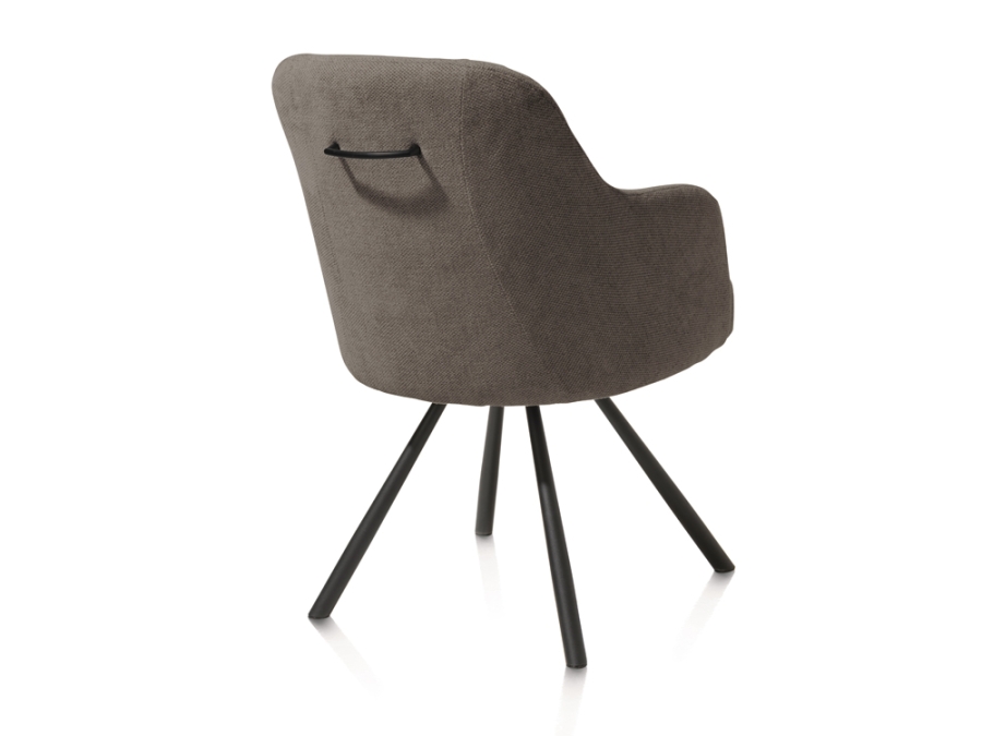 Der Armlehn-, Drehstuhl Eva besticht vor allem durch die Verwendung von hochwertigen Materialien. Der stilvolle Stuhl vereint einen Levigno-Polsterbezug in edlem Braun mit robusten, pulverbeschichteten Stahlbeinen, farblich abgestimmt in Rough off black. Dieses exquisite Materialzusammenspiel verleiht dem Stuhl nicht nur einen einzigartigen industriellen Chic, sondern gewährleistet auch seine Langlebigkeit und Stabilität.