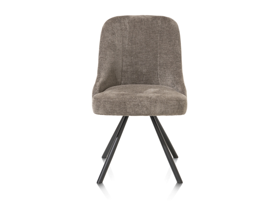 Der Charme des Drehstuhls Eva liegt in seiner harmonischen Materialkombination. Die braune Polsterfarbe des Levigno-Bezugs, gepaart mit den Rough off black farbenen, pulverbeschichteten Stahlbeinen gibt diesem Stuhl seinen speziellen Touch. Ein weiterer Hingucker ist der schlau platzierte Griff an der Rückenlehne, der ihm eine besondere Präsenz verleiht.