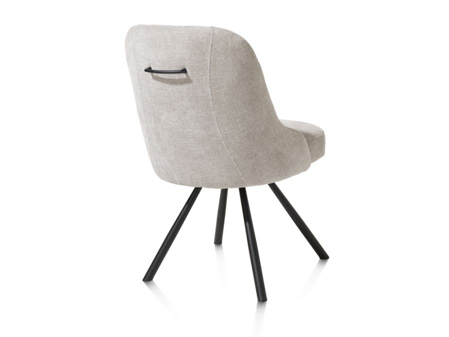 Der Drehstuhl Eva brilliert durch die harmonische Verbindung erstklassiger Materialien. Der Levigno-Polsterbezug in der Farbe Kiesel kontrastiert effektvoll mit den pulverbeschichteten Stahlbeinen in Rough off black und verleiht dem Stuhl seinen einzigartigen Charakter. Das Design wird durch den praktischen und ästhetisch ansprechenden Griff an der Rückenlehne abgerundet, der zusätzlich für Stabilität sorgt.