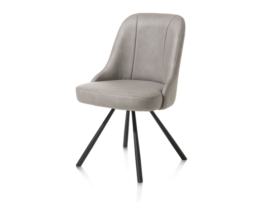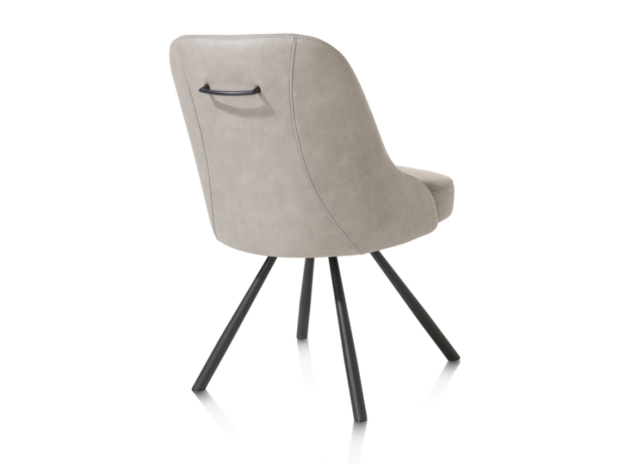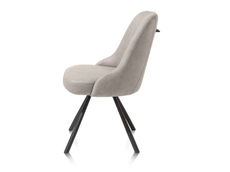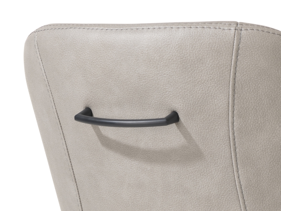 Der Drehstuhl Eva zeichnet sich durch die Verarbeitung hochwertiger Materialien aus. Der Pala-bezogene Sitz in einem angenehm hellgrauen Ton bietet hohen Komfort, während die pulverbeschichteten Stahlbeine in Rough Off Black ein Statement an zeitgeössisches Design setzen. Die sorgfältig gestaltete Rückenlehne hat eine Kontrastnaht und der praktische Griff an der Rückseite machen diesen Stuhl zu einem echten Blickfang.