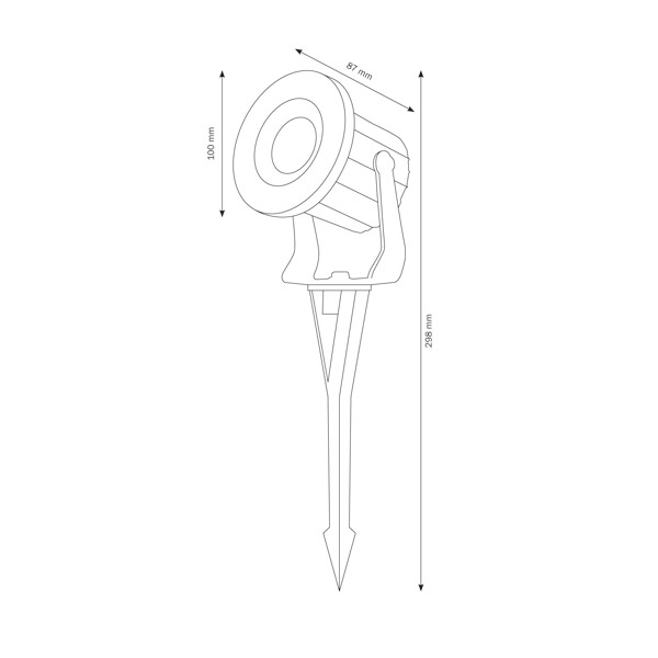 Die Leuchte ist kompakt und flexibel in ihrem Einsatz. Mit einer Höhe von ca. 29,8 cm, einer Breite von ca. 8,7 cm und einem Durchmesser von ca. 10 cm, ist der Erdspießstrahler ein zierliches, jedoch effektives Beleuchtungsinstrument für Ihren Außenbereich. Lediglich 0,65 kg wiegt dieses Leichtgewicht, welches sich hervorragend in jede Außenanlage integrieren lässt.