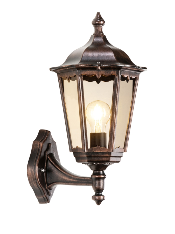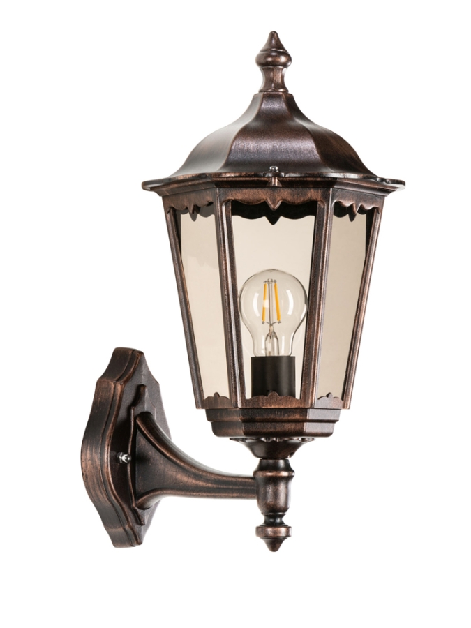 Die LCD Wandleuchte besteht aus robustem Aluminium-Druckguss und ist perfekt für den äußeren Bereich geeignet, da sie nicht nur wetterbeständig, sondern auch äußerst langlebig ist. Die Farbkombination aus elegantem Schwarz und stilvollem Kupfer verleiht dieser Lampe eine ansprechende Optik, die sowohl moderne als auch klassische Außenbereiche hervorragend ergänzt. Eine Abdeckung aus leicht bräunlich getöntem Glas schützt das Leuchtmittel und sorgt gleichzeitig für eine warme und einladende Lichtstreuung.