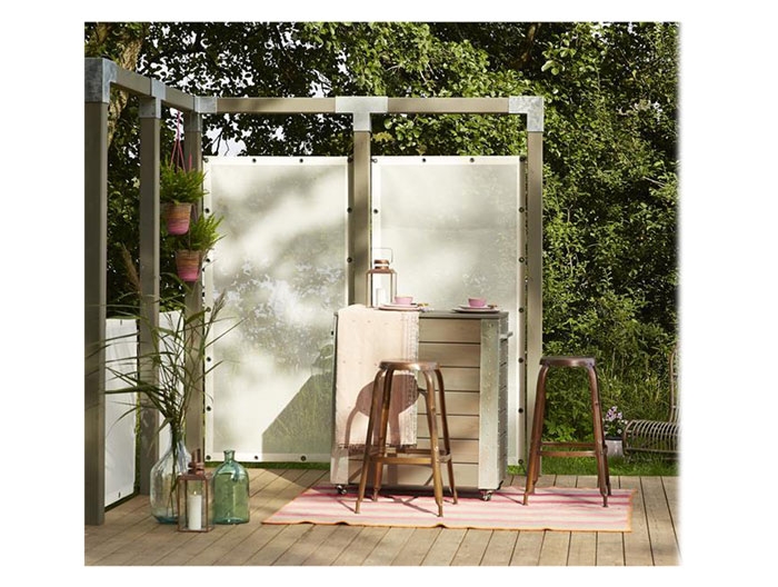 Zur individuellen Gestaltung sind Plus Metallbeschlägen, passenden Holzpfosten oder pflegeleichten Aluminiumpfosten separat erhältlich. So lässt sich ein optisch ansprechendes Gestell errichten und Ihr neuer Plus Windbreaker 180x180cm optimal zur Geltung bringen.
