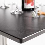 Mit der optisch dünnen, hochstabilen Tischplatte liegt die neue Designlinie PUROPLAN® von Sieger voll im Trend. Moderne Tischplattendekore mit Schieferoptik in Anthrazit und Mocca werden mit verschiedenen, farblich abgestimmten Gestellvarianten aus Aluminium oder Stahlrohr in den Farben Graphit, Eisengrau und Champagner kombiniert. Das umfangreiche PUROPLAN®-Tischsortiment bietet für jeden Geschmack und Verwendungszweck eine optimale Lösung.