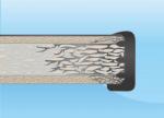 Die Abbildung zeigt den genauen Aufbau einer Vivodur®-Tischplatte von Sieger. Der Plattenkern, die Verzahnung und die kaum sichtbare Randüberlappung sind deutlich erkennbar.