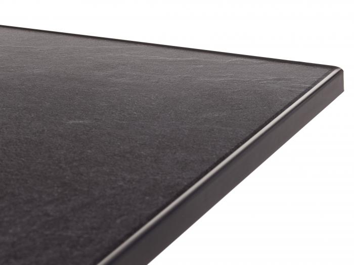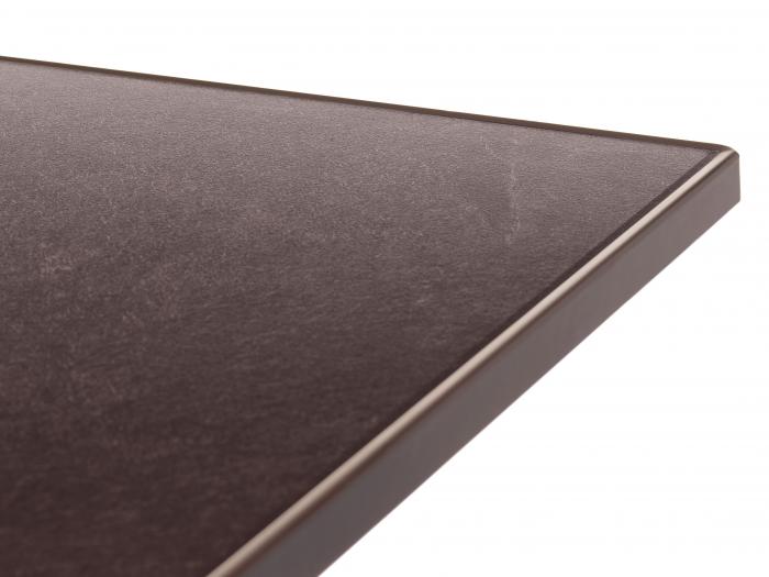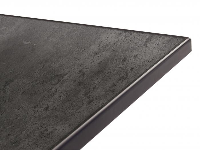 Durch die geringen Eckradien ist eine maximale Nutzfläche der Vivodur® -Tischplatten garantiert. Auch lassen sich so zwei Tische lückenfrei für eine größere Gesellschaft zusammenstellen. Die modernen Vivodur® -Tischplattenfarben mit Schieferoptik werden mit verschiedenen, farblich abgestimmten Gestellvarianten aus Aluminium oder Stahlrohr kombiniert.