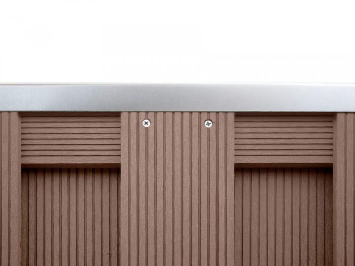 Für den Schutz der Oberkante der Zaunelemente vor Feuchtigkeit und UV-Strahlung muss die spezielle Abdeckleiste aus Aluminium verwendet werden. Die Befestigung erfolgt mittels MS-Polymerkleber.