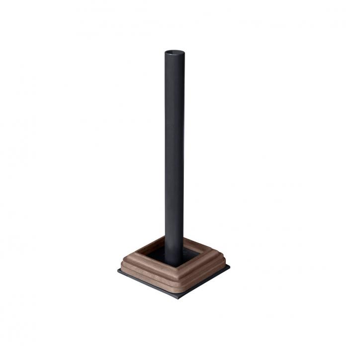 Zur Befestigung der Pfosten aus BPC bestehen zwei Alternativen. Zum Aufdübeln auf ein bestehendes Fundament kann der Pfostenträger verwendet werden. Dieser ist in zwei Farbausführungen verfügbar.